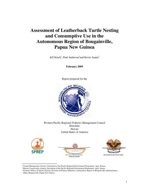 The Western Pacific Regional Fisheries Management Council (WPRFMC) has been funding several leatherback turtle recovery projects in Melanesia for a number of years. The major contribution by the WPRFMC in Papua New Guinea (PNG) is the ongoing support of the Huon Coast Leatherback Turtle Conservation Project (HCLTCP) in the Morobe Province