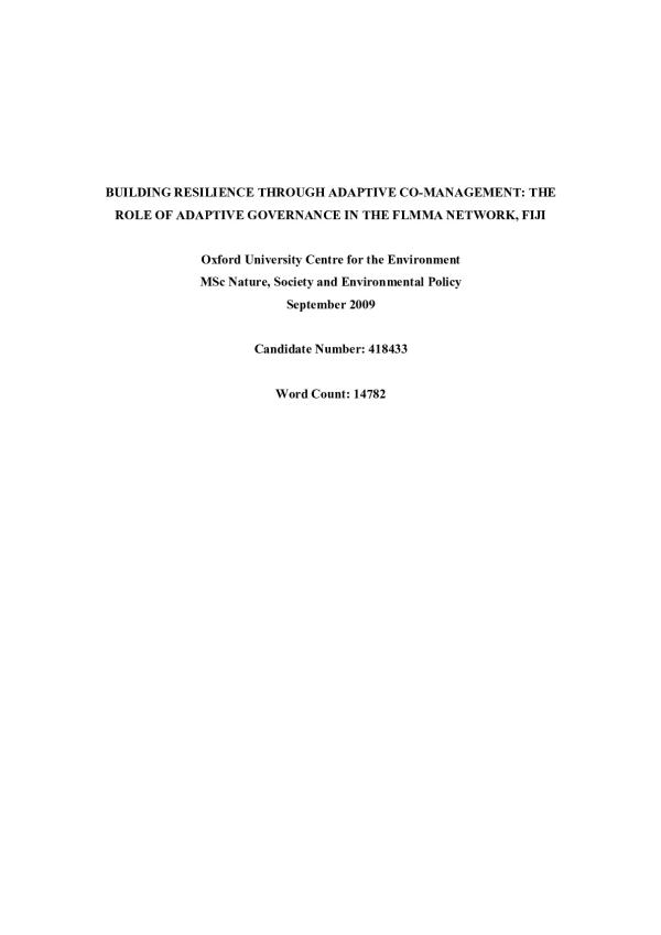Building resilience through adaptive co-management : the role of adaptive governance in the FLMMA network, Fiji