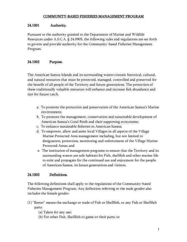 When communities participate in the American Samoan Community Based Fisheries Management Program, they adopt a set of by-laws as part of the process. Until now, these have been very hard to enforce because they were not official rules or regulations of the American Samoan government and therefore communities had little authority to enforce rules that were broken by outsiders. To address this challenge, the AS Department of Marine and Wildlife Resources has been working with the Attorney General to develop a standard set of government rules regulations that communities can choose from when developing their fisheries management plans
