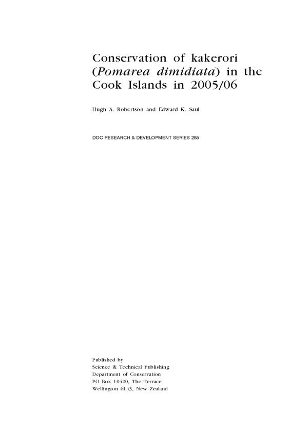 In 1989, the kakerori (Pomarea dimidiata) was one of the ten rarest bird species in the world, with a declining population of just 29 birds in the Takitumu Conservation Area (TCA) of southeastern Rarotonga. As a result of conservation management, the kakerori population rebounded, with up to 300 birds being recorded on Rarotonga and Atiu in 2004/05. The southern Cook Islands was, however, hit by five tropical cyclones over a 4-week period in FebruaryMarch 2005, and much of the forest on exposed faces, spurs and ridges (traditional kakerori habitat) was severely damaged. The population survived remarkably well, with a minimum of 274 adults known to be alive in the TCA in August 2005. An additional 17 adults were found on Atiu between August 2005 and March 2006. The main\ casualties of the cyclones on Rarotonga appeared to be young birds (13 years old) and very old birds (> 20 years old). Because the population on Rarotonga remained well within the management target of 250300 individuals, rat poisoning was again done fortnightly, as in the previous 2 years. Breeding productivity was exceptionally poor in 2005/06, mainly because of nesting failures or early fledgling deaths caused by abnormally wet conditions during the main fledging periods. Nests were more exposed to the elements because the cyclones had extensively defoliated the canopy. Furthermore, rats were often seen foraging during the day, apparently struggling to find food (few trees were fruiting). Only 22 fledglings were definitely seen in 2005/06; however, some territories were not checked or poorly checked during the breeding season, and some fledglings may have dispersed to better vegetated sites. We recommend that rat control should return to the weekly poisoning regime used during the 19892001 recovery phase of the kakerori management programme if the August 2006 census reveals that the population has fallen below 220 birds (a 20% decline from pre-cyclone levels). Otherwise the regime of the sustainable management phase (fortnightly poisoning) should continue. Record Created: 01-Sep-2008