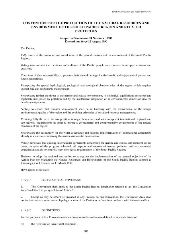 Environment protection - Convention - Oceania