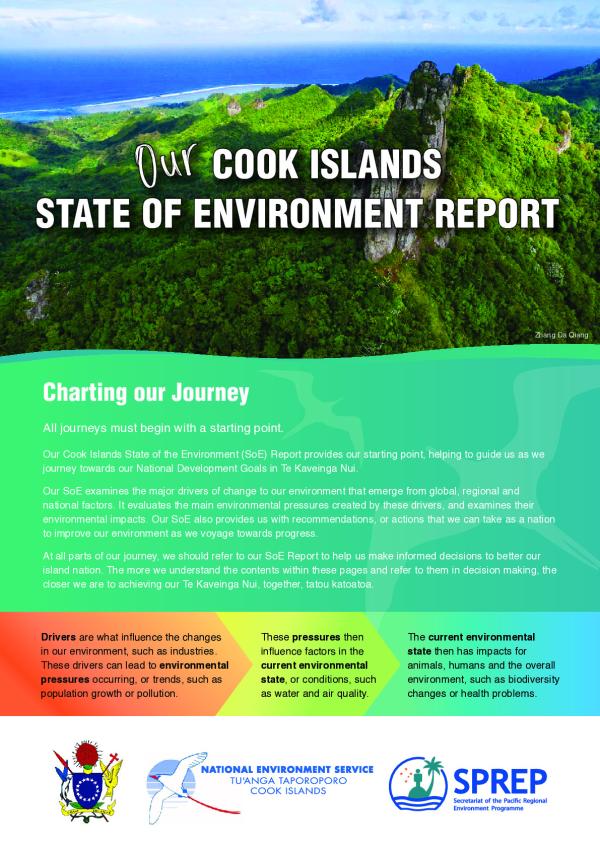 The Cook Islands State of the Environment (SOE) Report provides us with the chart to make informed decisions to accurately report on key environmental issues. Develop and implement policies and programmes to improve environmental conditions in the Cook Islands. Understand financial implications for which Cook Islands Government and other agencies can identify areas that require financial input. Work together to update the SOE every five years