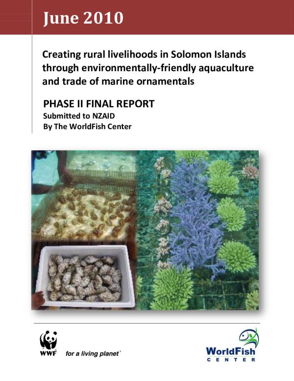 This is the final report of the NZAID-funded project that aimed to establish a viable commercial enterprise for the culture of marine ornamentals for the aquarium trade as a livelihood option in the Western Province, Solomon Islands. This report describes the outcomes of phase II (2009-2010) of this two phase project which began in 2005. It also provides an overall assessment of the effectiveness of the full project in providing farmers with the capacity to become involved in a small-scale environmentally sustainable business activity as well as assessing the long-term sustainability of the marine ornamental trade.