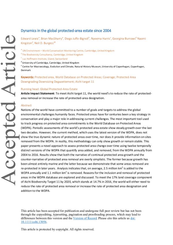 Nations of the world have committed to a number of goals and targets to address the global environmental challenges humanity faces. Protected areas have for centuries been a key strategy in conservation and play a major role in addressing current challenges. The most important tool used to track progress on protected area commitments is the World Database on Protected Areas (WDPA). Periodic assessments of the worlds protected area estate show steady growth over the last two decades. However, the current method, which uses the latest version of the WDPA, does not show the true dynamic nature of protected areas over time, nor does it provide information on sites removed from the WDPA. In reality, this methodology can only show growth or remain stable. This paper presents a novel approach to assess protected area change over time using twelve temporally distinct versions of the WDPA that quantify area added, and removed, from the WDPA annually from 2004 to 2016. Results show that both the narrative of continual protected area growth and the counter-narrative of protected area removal are overly simplistic. The former because growth has been almost entirely marine and the latter because we demonstrate that some areas removed are re-protected in later years. Analysis indicates that, on average, 2.5 million km2 is added to the WDPA annually and 1.1 million km2 is removed. Reasons for the inclusion and removal of protected areas in the WDPA database are explored and discussed. To meet the 17% land coverage component of Aichi Biodiversity Target 11 by 2020, which stands at 14.7% in 2016, the world will either need to reduce the rate of protected area removal or increase the rate of protected area designation and addition to the WDPA.