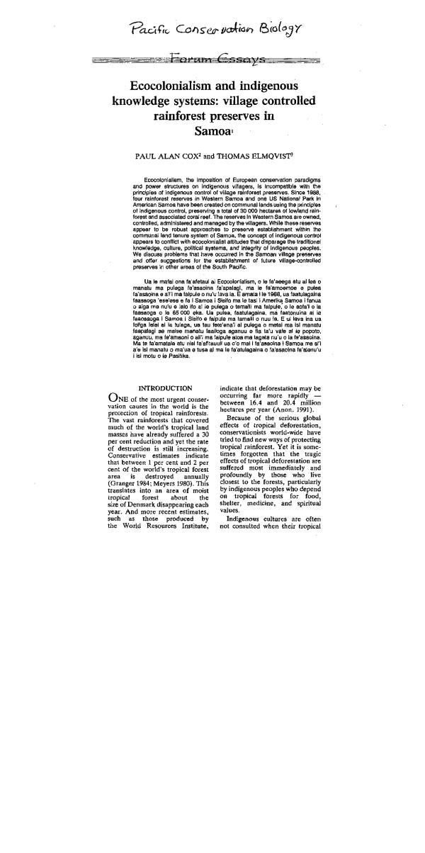 "Articel taken from Pacific Conservation Biology, 1(1)June 1993, p.6-12"