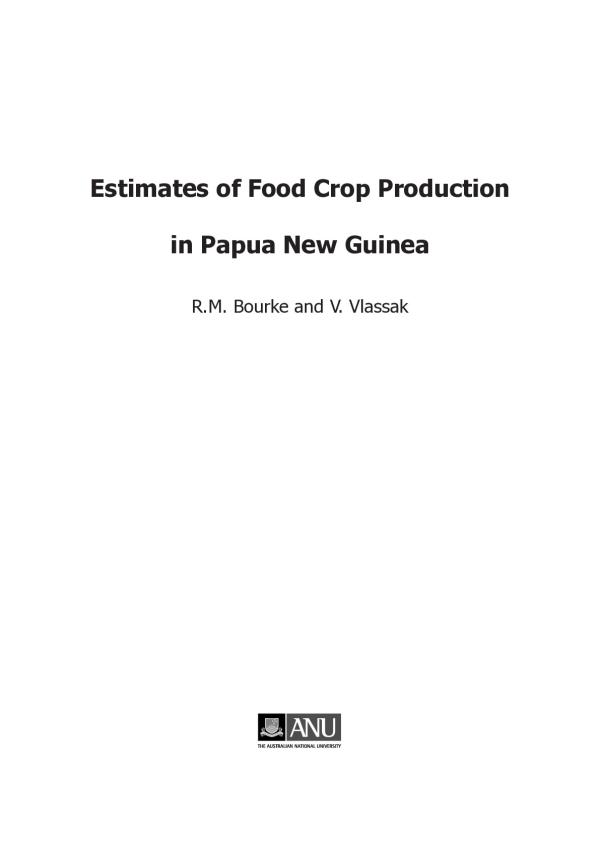Estimates of the quantity of food produced in Papua New Guinea (PNG) are important for planning and research. Information contained in the Mapping Agricultural Systems of PNG database of the proportion of land devoted to various food crops allows new estimates to be made. To calculate annual production for each staple crop, estimates of the proportion of garden area devoted to each crop for each agricultural system were combined with census data on the rural population in 2000 (4.3 million rural villagers), mean garden area planted per person per year and mean crop yield for that environment. These data allow estimates to be made for banana, cassava, coconut, potato, Queensland arrowroot, rice, sago, sweet potato, and various taro and yam species. Total annual staple crop production is estimated as 4.5 million tonnes (1050 kg/person/year), with an energy value of 4.3 × 1012 kilocalories (2770 kcal/person/day). It would require an additional 1.2 million tonnes per year of imported rice to replace the energy value of these staple foods, with a retail value of K2850 million.