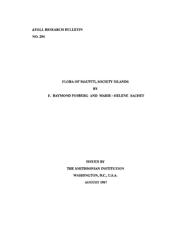 This report includes an introductory section on the geography and vegetation, and a main portion listing the species of vascular plants known to occur, or to have occurred, on the island, with detailed descriptions of those of which time permitted a careful study, and brief descriptions of the remaining native species. Those suspected to have been brought by Polynesians in pre-European time are also described and discussed in some detail. Exotic species are either very briefly described or, especially in cases of very familiar weeds and ornamentals, merely listed with remarks on their occurrences and citations of specimens. Collections by Raynal are cited, as are those made on the 1985 expedition, with symbols indicating the herbaria where they are deposited. The Raynal specimens are in the herbarium of the Laboratoire de Phanerogamie Museum d'Histoire Naturelle, Paris (P).