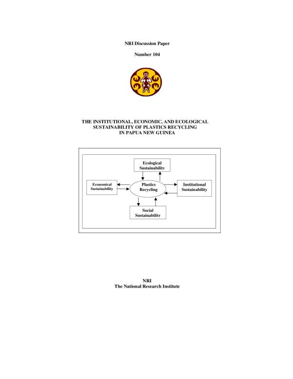 The deliberate and careless disposal of plastics is a growing concern in Papua New Guinea. Koi (2005) discusses the environmental impacts of plastics, and the different waste management alternatives, including the 5Rs reduce, reuse, recycle, recover, and rethink.