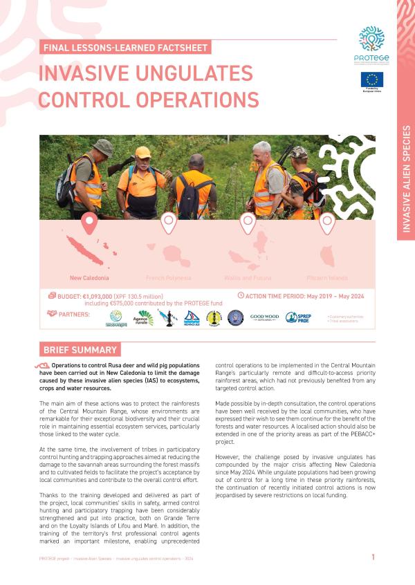 Operations to control Rusa deer and wild pig populations have been carried out in New Caledonia to limit the damage caused by these invasive alien species (IAS) to ecosystems, crops and water resources. The main aim of these actions was to protect the rainforests of the Central Mountain Range, whose environments are remarkable for thier exceptional biodiversity and their crucial role in maintaining essential ecosystem services, particularly those linked to the water cycle.
