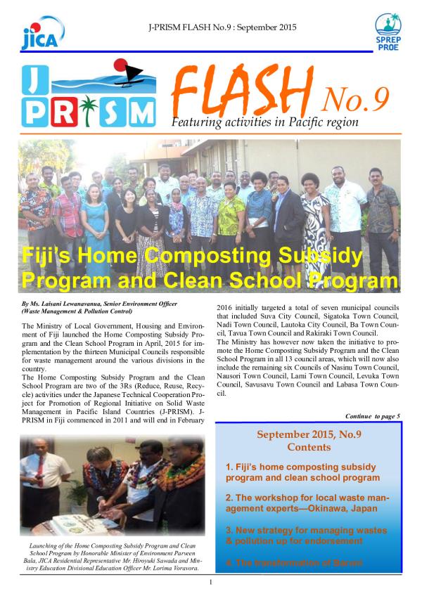 The Ministry of Local Government, Housing and Environment of Fiji launched the Home Composting Subsidy Pro-gram and the Clean School Program in April, 2015 for im-plementation by the thirteen Municipal Councils responsible for waste management around the various divisions in the country.