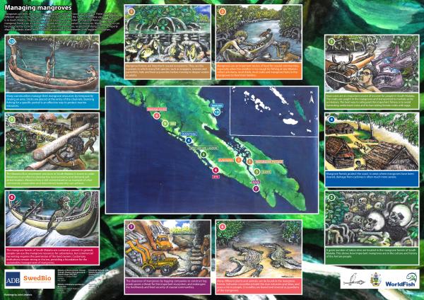 Mangroves are trees that can grow in salt water, where the land meets the sea. There are about 30 different species of mangroves in Solomon Islands. One of the largest mangrove areas of the country is in South Malaita, covering West Areare Lagoon, Maramasike Passage and Raroisuu Bay.