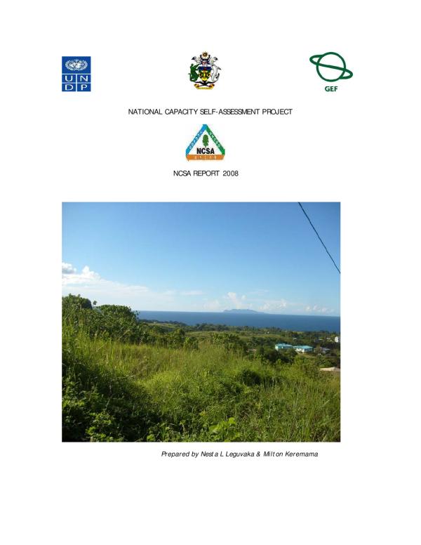 The National Capacity Self- Assessment Project [NCSA] is a national project of the Solomon Islands Government funded by the Global Environment Facility [GEF]. The Department of Environment and Conservation of the Ministry of Environment, Conservation and Meteorology is responsible for the execution of the project and UNDP the Implementing agency. The main objective of the project is to carry out a series of assessments to determine the gaps within the environmental and capacity arenas and to produce an action plan aiming at countering the gaps identified in the assessments.