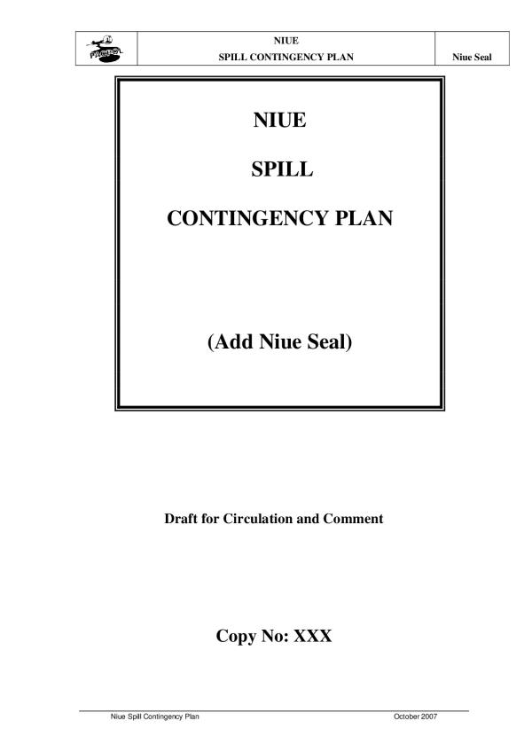 The Government of Niue has developed this Spill Contingency Plan as part of its commitment to protecting its valuable coastal and marine resources from the threat of pollution from spill incidents. The Plan has been developed to reflect the essential steps necessary to initiate, conduct and terminate an emergency spill response on, or into Niue waters. The Plan extends to also address spill response to spill incidents on land.