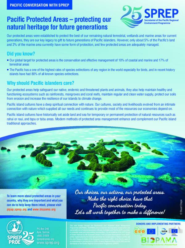 Our protected areas were established to protect the best of our remaining natural terrestrial, wetlands and marine areas for current generations, they are our key legacy to gift to future generations of Pacific islanders. However, only about 5% of the Pacifics land and 2% of the marine area currently have some form of protection, and few protected areas are adequately managed.