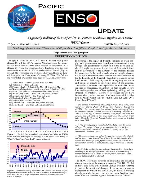In response to the impact of drought conditions on water supply, local governments have issued proclamations concerning drough, the governments of Palau and FSM have declared a drought emergencies.