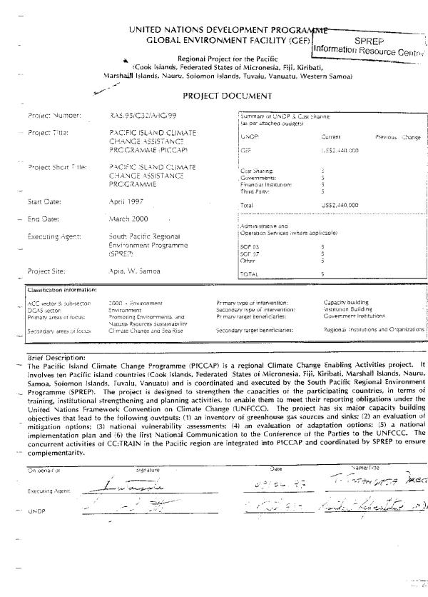 The Pacific Island climate Change Programme (PICCAP) is a regional Climate Change Enabling Activities project. It involves ten Pacific Island countries (Cook Islands, Federated States of Micronesia, Fiji, Kiribati, Marshall Islands, Nauru, Samoa, Solomon Islands, Tuvalu, Vanuatu) and is coordinated and executed by the South Pacific Regional Environment.