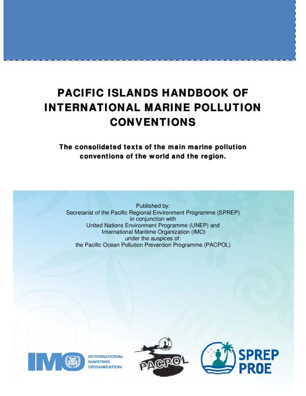 In 2000, Pacific Islands Handbook Of International Marine Pollution Conventions was Published by the Secretariat of the Pacific Regional Environment Programme (SPREP), in conjunction with the United Nations Environment Programme (UNEP) and the International Maritime Organization (IMO). This handbook was compiled under the auspices of the Pacific Ocean Pollution Prevention Programme (PACPOL).