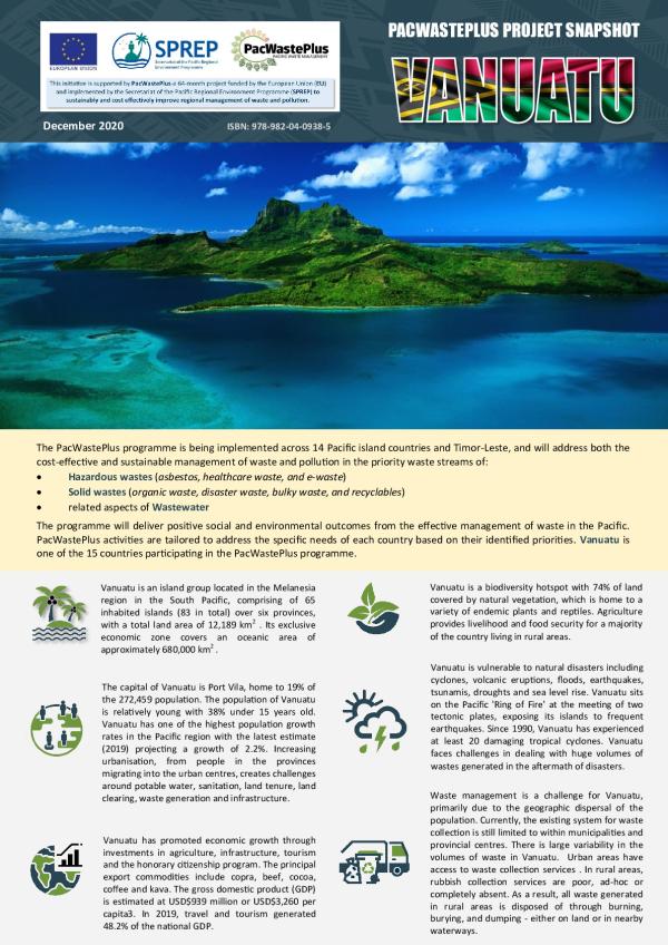 Vanuatu is an island group located in the Melanesia region in the South Pacific, comprising of 65 inhabited islands (83 in total) over six provinces, with a total land area of 12,189 km2 . Its exclusive economic zone covers an oceanic area of approximately 680,000 km2 .