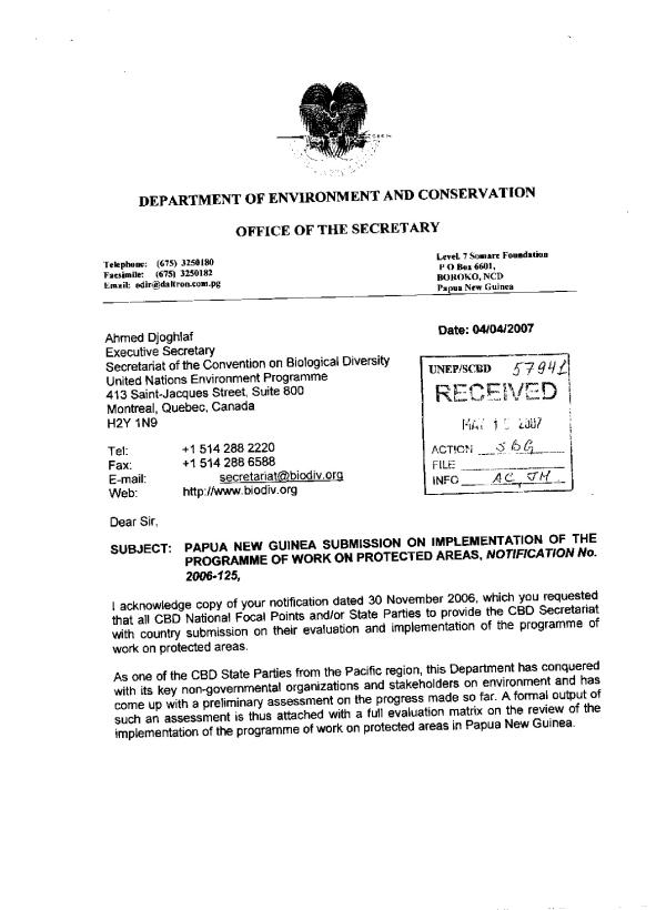 Papua New Guinea information on implementation of the Programme of Work on protected areas - Evaluation matrix for the review of the implementation of the programme of work on protected areas.