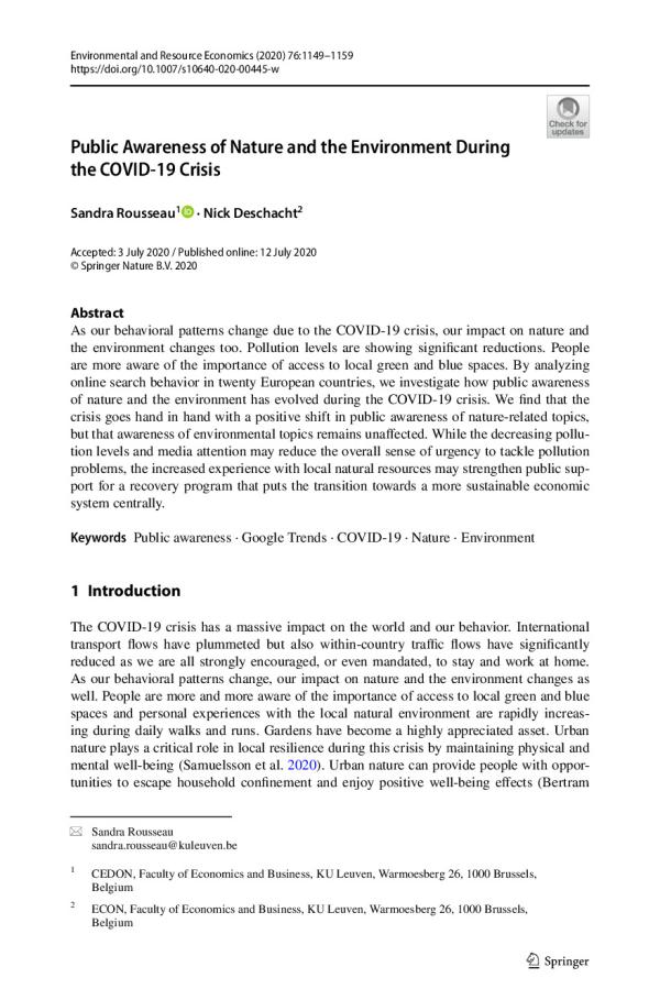 As our behavioral patterns change due to the COVID-19 crisis, our impact on nature and the environment changes too. Pollution levels are showing significant reductions. People are more aware of the importance of access to local green and blue spaces.