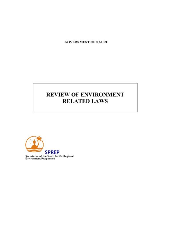 In mid 2006 a comprehensive review of environment related laws was undertaken for the Department of Commerce, Industry and Resources in the Republic of Nauru. At the same time a review of environment related International Conventions was also undertaken with a view to identifying the legislative reforms that are required for the Government of Nauru to achieve compliance with the obligations that arise under these Conventions. Both of these Reviews have identified a range of legislative areas related to issues of environmental management and protection where legislative reform is warranted. In some cases this would involve the making of new laws, by Act or Regulations, to cover areas which do not have effective laws in force. In other areas this would involve amendments to existing laws.