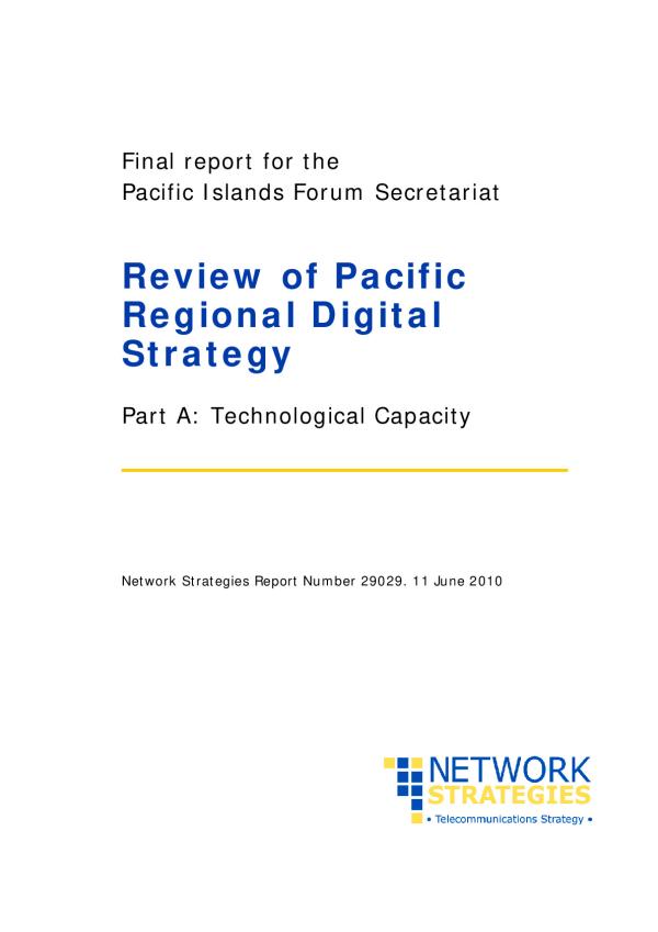 The Pacific Regional Digital Strategy is an initiative under the Pacific Plan to promote economic growth, sustainable development, good governance and security in Forum Countries. The Strategy establishes the following priorities: