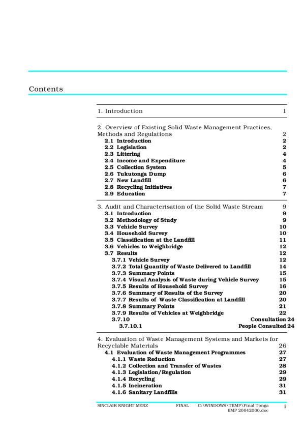 This report was financed by the European Communities from a grant of the European Development Fund and is presented by the consultant Sinclair Knight Merz Ltd for consideration of the Tongan Government. It does not necessarily reflect either the opinion of the latter or the European Commission.