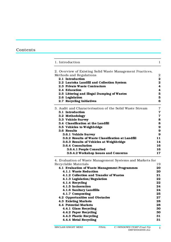 This report was financed by the European Communities from a grant of the European Development Fund and is presented by the consultant Sinclair Knight Merz Ltd for consideration of the Fijian Government. It does not necessarily reflect either the opinion of the latter or the European Commission.