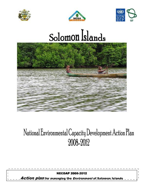 This process of assessing the individual, systemic and institutional levels to capture the gaps and constraints that exist within the different sectors, organisations and institutions in the country' especially those that have direct influence over the environmental sector in the country' was carried out over the 2005-2008 period. With the assessments as baseline, this Action Plan Document, the 'National Environmental & Capacity Development Action Plan' [NECDAP] of Solomon Islands was drawn up.