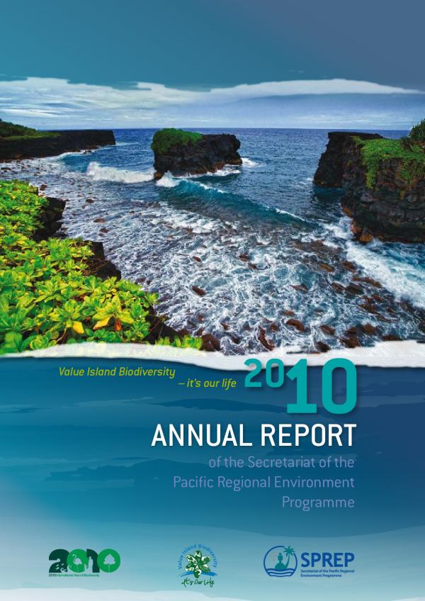 This Annual Report notes the major achievements of SPREP in supporting Pacific island countries and territories to address issues relating to: biodiversity and ecosystem management, waste management and pollution and environmental monitoring and governance