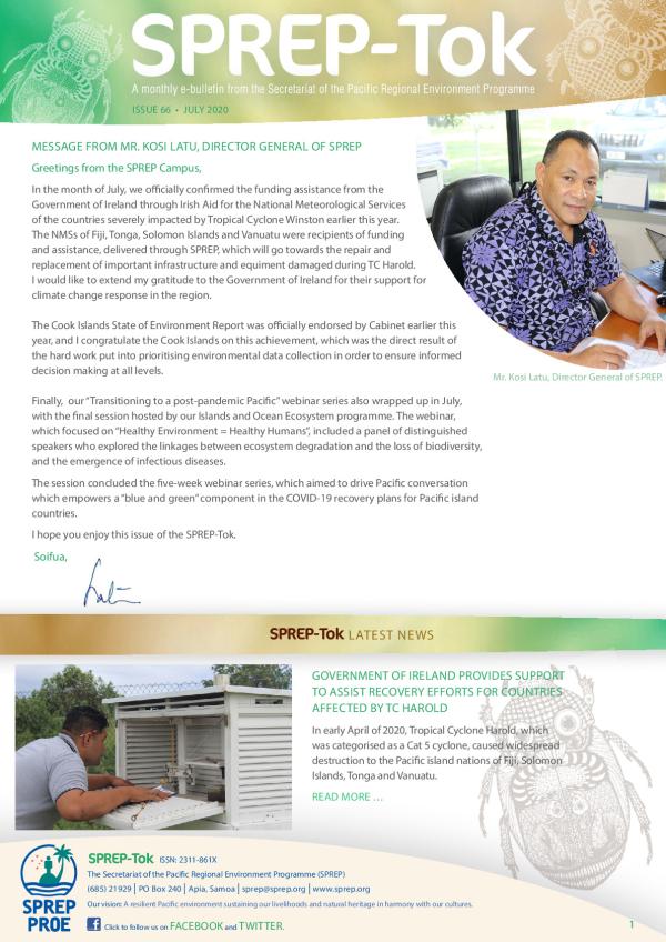 A monthly e-bulletin of activities and assistance from the Secretariat of the Pacific Regional Environment Programme to its member countries.
