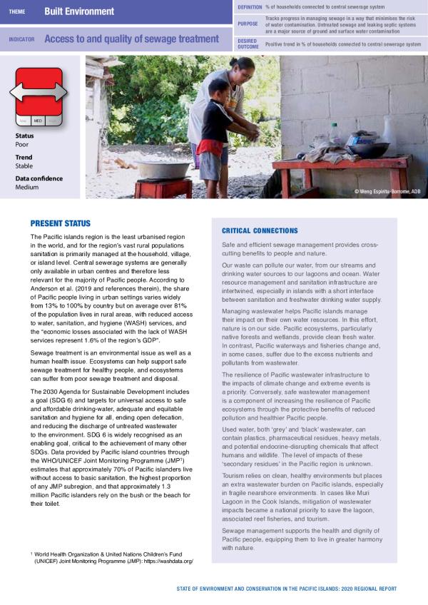 The Pacific islands region is the least urbanised region in the world, and for the region’s vast rural populations sanitation is primarily managed at the household, village, or island level. Central sewerage systems are generally only available in urban centres and therefore less relevant for the majority of Pacific people.