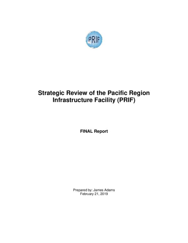 This study assesses the development impact and effectiveness of the Pacific Region Infrastructure Facility (PRIF)and provide suggestions on potential future directions of this organization. This work was carried out by consulting with PRIF Members and other stakeholders on a range of key strategic issues.