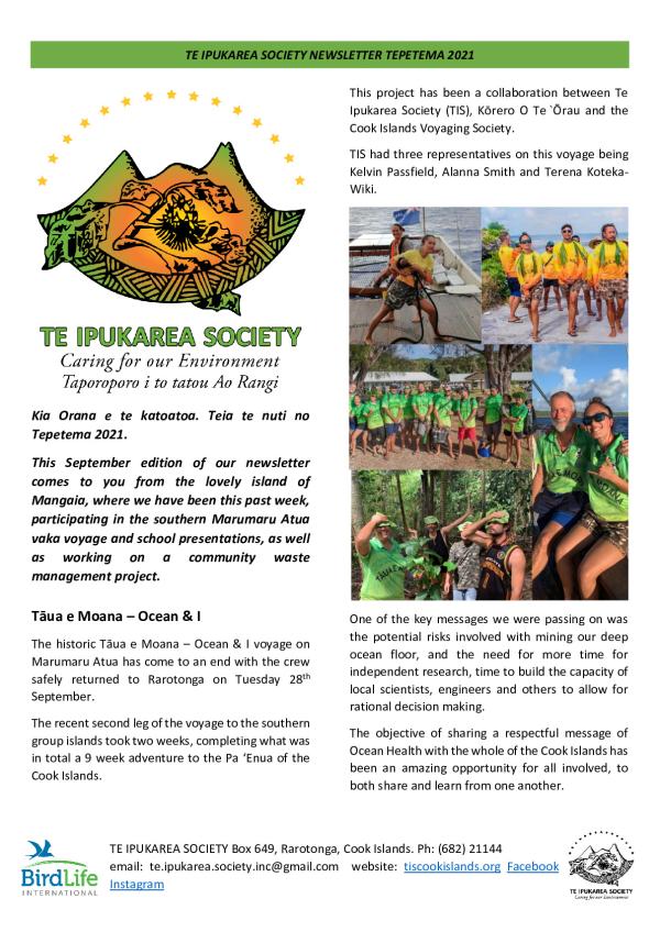 This September edition of our newsletter comes to you from the lovely island of Mangaia, where we have been this past week, participating in the southern Marumaru Atua vaka voyage and school presentations, as well as working on a community waste management project.