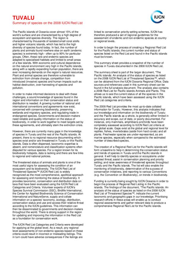 The Pacific islands of Oceania cover almost 15% of the world's surface and are characterised by a high degree of ecosystem and species diversity. The region is characterised by thousands of isolated small coral atolls and higher volcanic islands, which has led to the high diversity of species found today. In fact, the number of plants and animals found nowhere else on earth (endemic species) is extremely high - often up to 90% for particular groups. Often, these rare and endemic species are adapted to specialised habitats and limited to small areas of a few islands. With economic and cultural dependence on the natural environment very high in the Pacific islands, along with a rapidly expanding human population, there are ever increasing demands on the region's natural resources. Plant and animal species are therefore vulnerable to extinction from climate change, competition from introduced (invasive) species and human impacts such as habitat destruction, over-harvesting of species and pollution.