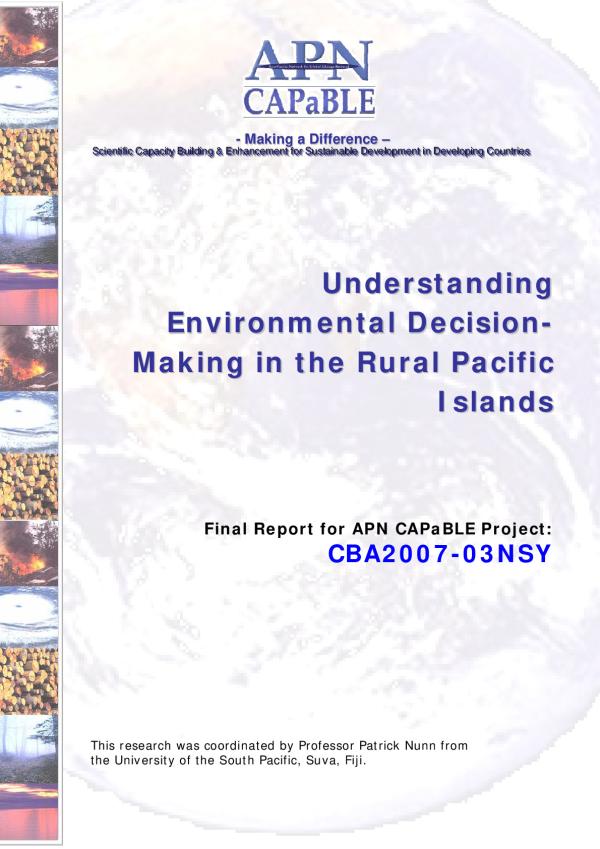 The main influences on environmental decision-making in rural parts of the Pacific Islands region are emulation, experience, and inferred best-practice. Emulation means that often one community will simply copy the solution adopted by another community in response to what is perceived to be the same challenge. It is in this way that maladaptation has spread through many parts of the Pacific, particularly what has been referred to as the seawall mindset. Experience means that a community will often do what they did before in response to a particular challenge, even though (i) the former challenge may have been different to the present one, and (ii) the efficacy of the response to the earlier challenge has not been fully evaluated. Inferred best-practice is the only response that includes externally-derived information to any significant extent. It involves community leaders and their advisers relating their knowledge about inferred best-practice in response to a particular challenge elsewhere. Often that knowledge is highly prized and is influential in the particular decision that the community takes, but often it is in error and therefore unhelpful in informing the decision
