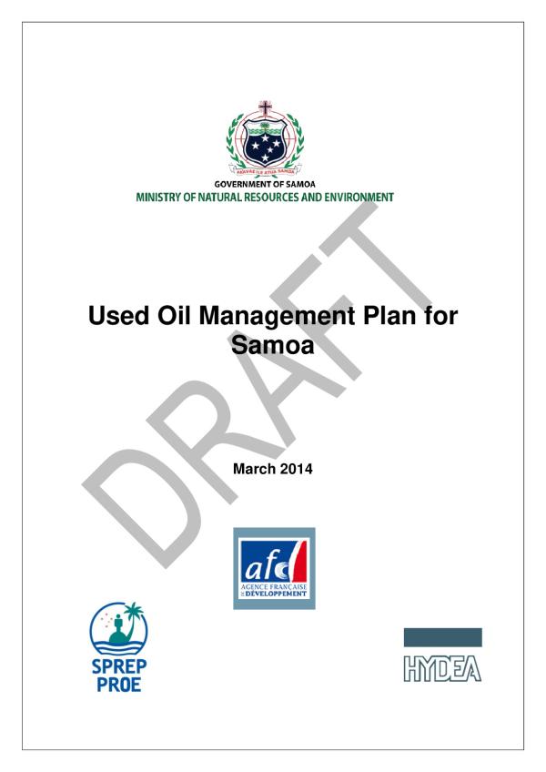 Used oil - lubricating oil imports - Waste Management and Pollution Control Programme.