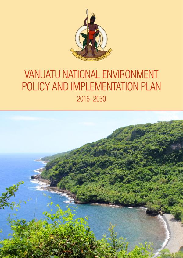 The Vanuatu National Environment Policy and Implementation Plan 20162030 (NEPIP) is an overarching policy for the sustainable conservation, development and management of the environment of Vanuatu. It is the first of its kind since Vanuatu gained independence in 1980. The NEPIP aims to: 1) provide for the co-ordination of related activities; 2) promote the environmentally sound and safe management and conservation of the natural resources and environment of Vanuatu; and 3) outline the operational matters necessary to implement 1) and 2) above. There are several challenges and opportunities to be addressed. The NEPIP provides the opportunity for change. This policy will be implemented in pursuit of the National Sustainable Development Plan (NSDP), which is an overarching government policy document. The environment is one of the three pillars under the NSDP. The NEPIP links the NSDP and the various sectors under the environment pillar.