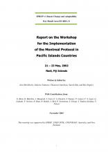 This report describes the proceedings of the Workshop on the Implementation of the Montreal Protocol in the Pacific region held in Nadi, Fiji 21 23 May 2002 at the Fiji Mocambo Hotel. This workshop was attended by representatives from South Pacific Regional Environment Programme (SPREP), United Nations Environment Programme's Division of Technology, Industry and Economics (UNEP DTIE), UNEP's Regional Office for Asia and the Pacific (UNEP ROAP), representatives from governments of Australia, and the Pacific island countries: Cook Islands, Fiji, Nauru, Niue, Papua New Guinea, Republic of the Marshall Islands, Palau, Samoa, Solomon Islands, Tonga, Tuvalu, and Vanuatu. The purpose of this workshop was to facilitate the process of implementing the Montreal Protocol in each participating country through the Regional Strategy. One aim was to introduce the Regional Strategy and gain support from each participating country. Another aim of the workshop was to obtain data of ODS consumption from each participating country in compliance with the Montreal Protocol.