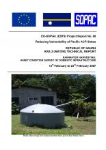 The mission was undertaken as an integral part of the Key Result Area 2 (Water) contribution to the SOPAC EU EDF8/9 Project"Reducing Vulnerability of Pacific ACP States" with the objective of field surveying the current asset condition status of domestic and community rainwater harvesting infrastructure. Although a little over eight field survey days were achieved on-island, daily progress was compromised by various difficulties, particularly the limited availability of diesel fuel on-island which impacted both ease of transportation and availability of electricity and water. Despite these constraints, two field survey teams visited a total of 308 properties within the districts of Buada, Yaren, Meneng, Anibare and ljuw, initiating a comprehensive database which can either be fully completed within the remaining island districts at a future date, or used with some confidence as a statistically representative sample for forward interpolation of "whole-of- island" conditions.