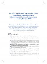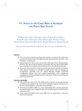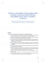 Fiji, New Caledonia, Vanuatu, Solomon Islands, Samoa and Tuvalu report monitoring data for this report, with data from a broad range of observers (scientists, students, dive guides and communities); Nauru has not conducted recent monitoring; Coral cover has changed since the 2004 report due to effective management (positive), or local disturbances, coral predation and natural disasters (negative). Average coral cover at monitoring sites was 45% in Fiji; 27% in New Caledonia; 43% in Samoa; 30% in Solomon Islands; 65% in Tuvalu; and 26% in Vanuatu; Monitoring observations over 9-10 years in Fiji and New Caledonia indicate that these reefs have coped reasonably well with natural and human stressors without catastrophic changes; Densities of edible fish and invertebrates remained generally low (0-10/100m2) in 4 countries reflecting high subsistence and commercial fishing pressure. Butterflyfish, parrotfish, surgeonfish and damselfish were generally most dominant. High densities of parrotfish were reported from 4 countries; Socioeconomic monitoring is conducted in Fiji, Samoa and Solomon Islands. Greatest activity is by the Fiji Locally Marine Managed Area (FLMMA) network at 270 villages across all Fiji provinces. Most households harvest marine resources for subsistence and partially for sale, with few commercial fishers. In Samoa, more people eat canned fish than fresh fish, possibly because of decreased fish stocks in the last 10 years. In the Solomon Islands, some traditional managed systems have collapsed due to poor understanding of fisheries and resource management issues or poor national regulations. Mangrove destruction and greater fishing pressure are reducing family incomes;